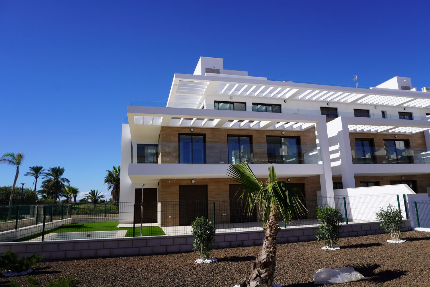Moderne Villa’s met 4 slaapkamers en 3 badkamers met een grote tuin rondom van minimaal 200 m2 op het mooie Vistabella Golf Resort. Het is een afgesloten en bewaakte urbanisatie. En natuurlijk een eigen zwembad met buitendouche.